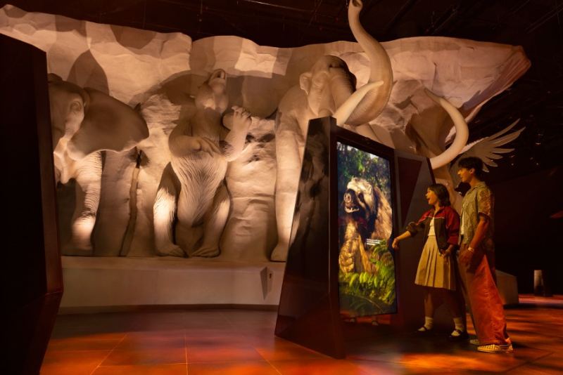 Exploria is the most exciting new addition. Opened in March 2026, it's Singapore's newest indoor attraction and currently one of the most talked-about family destinations in the country. It's a massive 10,000 sq m, two-level multimedia experience with five themed worlds: from the Realm of the Giants (prehistoric megafauna, a sweeping 360° theatre) to Micro Worlds (illuminated microscopic life in extraordinary detail), Extreme Frontiers (Arctic and desert simulations complete with temperature changes), World of Darkness (deep-sea bioluminescence), and Infinite Wonderland (a full rainforest canopy experience). Every visitor gets an RFID wristband to activate 80+ interactive installations and collect species along the way, turning every learning journey into an immersive adventure.