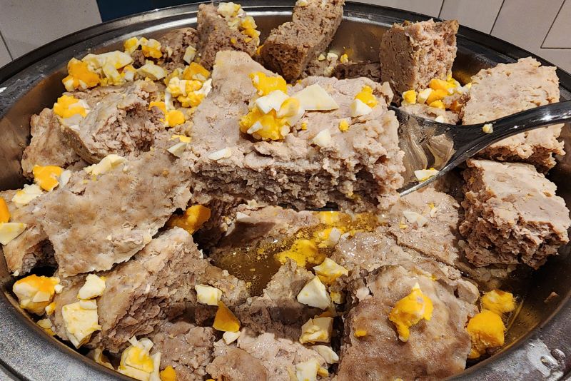 Similarly, the beancurd with minced meat was a delightful pick. The beancurd slices were soft, while the gravy was light, flavourful, and packed with delicious minced meat. I drizzled the gravy generously on my porridge and enjoyed satisfying slurps of this combo. I’d have been happy to continue my meal with only the porridge and the beancurd with minced meat, but the other options of the spread looked irresistible. So, off we went for a second round.