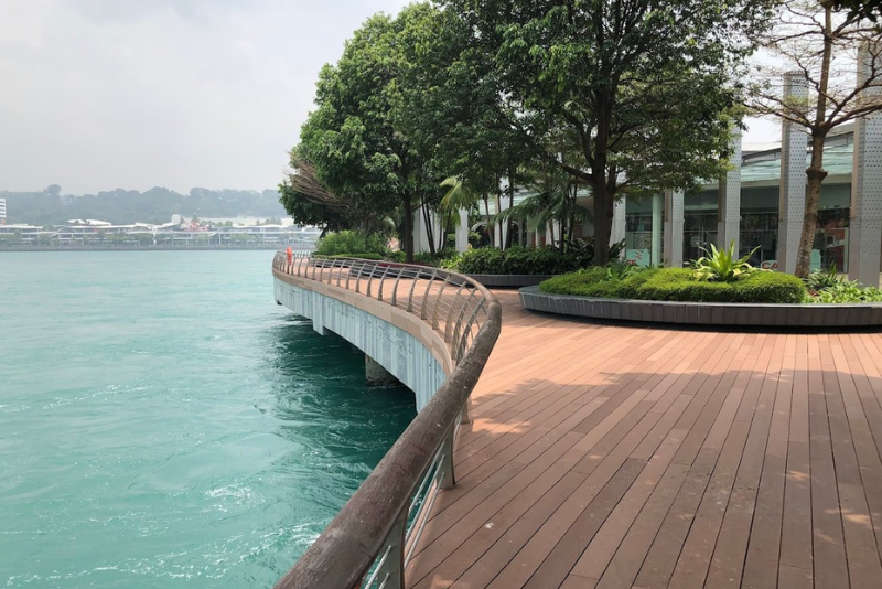 On my recent walk across the pond, I was particularly struck by the sights of cargo ships juxtaposed with the lush greenery of Sentosa growing in the distance. The unobstructed views of the waterfront are fantastic, and make a great way to transition from shopping to a beach-bound adventure.