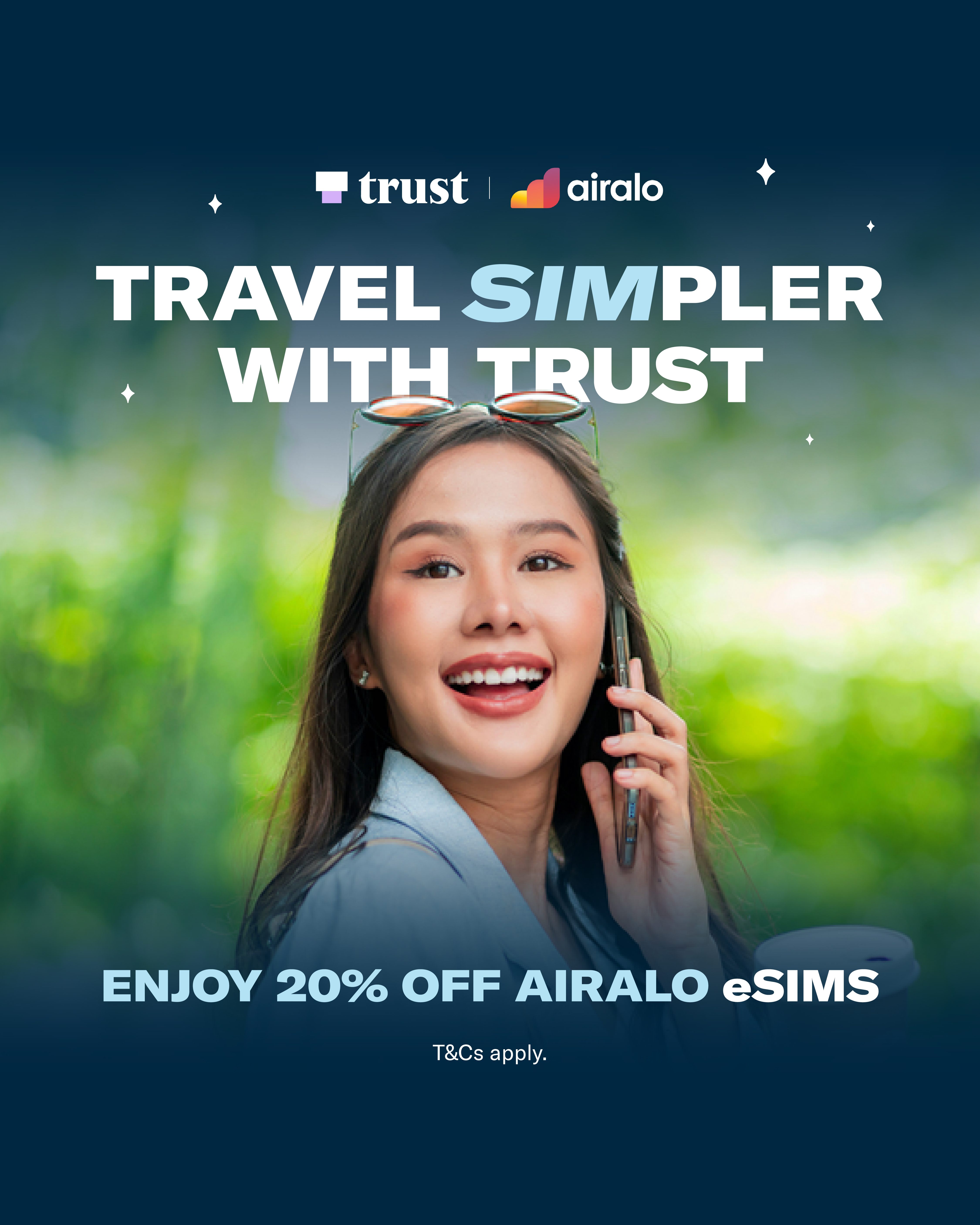 Travel smarter with 20% off Airalo eSIMs when you pay with your Trust Card - perfect for staying connected on holidays, work trips, or weekend getaways.